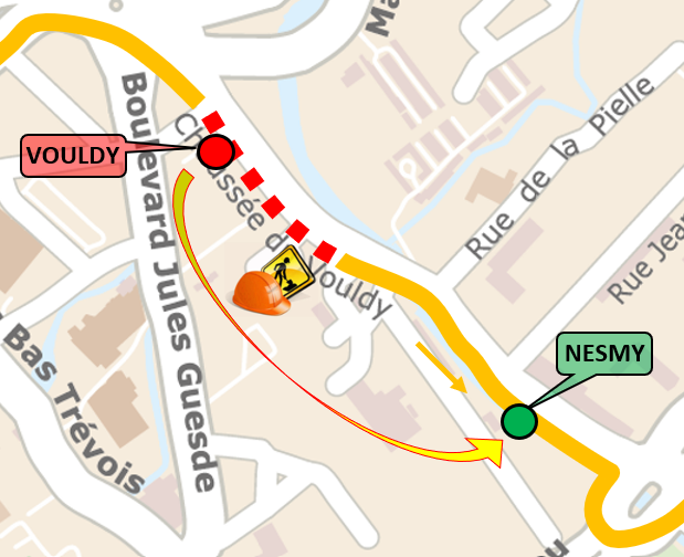 En raison de travaux sur la chaussée du Vouldy entre la petite rue Robert et le 16 Chaussée du Vouldy, la circulation sera réduite entre la petite rue Robert et le 16 Chaussée du Vouldy du 17 Novembre au 5 décembre 2025