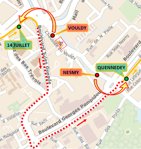 L'arrêt NESMY ne sera pas desservi et sera déplacés vers l'arrêt QUENNEDEY (de la ligne 4, sens Le Hamelet vers St Julien)